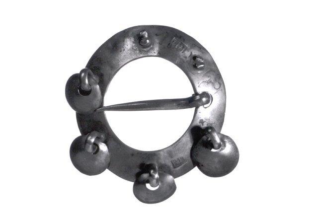 Neljällä kuperalla levyhelyllä varustettu hopeasolki.