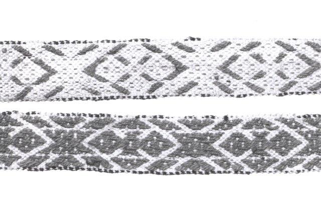 Nauhapirralla kudotut paulat, kahdella värillä kudotut: punaisella ja sinisellä. Loimi pellavaa.