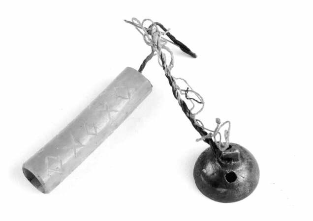 Koristeena rikkikuppi. Inarilaiseen neulakotaan kuuluu vielä sakset ja puukko tuppineen ja näiden kaikkien yhteisnimi on äimi-skiärggu.