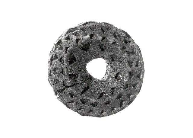 Pyöreä, koristettu veitsenkärkipistelmin.