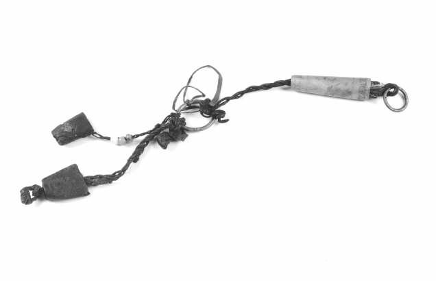 Vyöllisiin kuuluu yksinkertainen vyöllispyörä, josta on ripustettu neulakota sekä kaksi sormustinta, joista toisen nahkahihnaan on pujotettu kolme helmeä.
