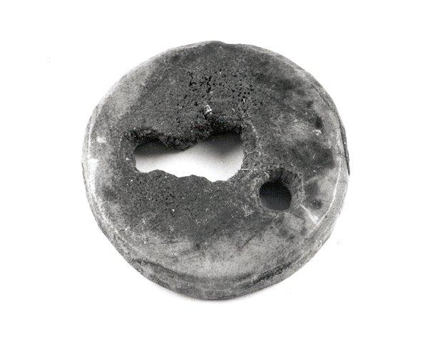 Värttinän kehrä (?), kiekko, jossa kolme reikää, näistä kaksi toistensa yhteydessä. (Mahd. myös nappina käytetty.)
