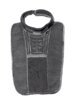 Rintalappu, esineeseen liittyy niskasta suljettava kaulus. Sivut vihreätä, keskiosa punaista verkaa, kauluksen sivut tummansinistä verkaa. Keskustan yläosa ja kauluksen etuosa kirjailtu tinalangoin; keskeisenä kuviona iso, puuta muistuttava ornamentti. Punaisessa verassa useita koinreikiä.