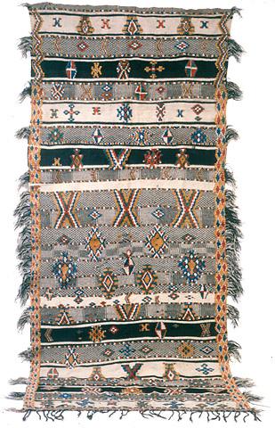 Tummanruskeaan villaloimeen kudottu seinämatto (berb. tikdyft), jossa on tummanruskea- ja luonnonvalkopohjaisia kuderipsiraitoja sekä tummanruskeita ja luonnonvalkoisia geometriskuvioisia (mm. risti-, kolmio- ja vinoneliöaiheisia) kaksipuolisia raitoja, joissa oikean puolen kuvio on negatiivina nurjalla puolella. Näiden raitojen kudelankojen päät näkyvät pitkinä hapsuina tekstiilin sivuilla. Edellä mainittujen raitojen päällä on toisistaan erillään olevia ryijytekniikalla solmittuja värikkäitä nukkakuvioita (sininen, sinipunainen, vihreä, punainen). Molemmilla sivuilla on lisäksi samoin värein toteutettu yhtenäinen nukkakuvioraita. Tekstiilin kuvioiden, kuten silmiä symboloivien vinoneliöiden, on uskottu suojaavan esinettä ja sen omistajaa pahalta silmältä. A.O.L. nro 131a