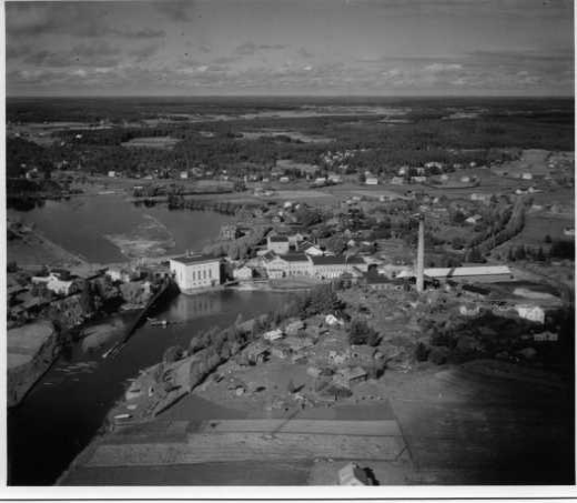 | ilmavalokuva: Kymi, Kymijoki, ilmeisesti Korkiakosken voimalaitos ja A |