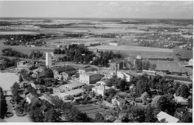 Vasemmalla Vernissatehtaan alue ja keskellä kuvaa Tikkurilan vanhin rautatieasema.