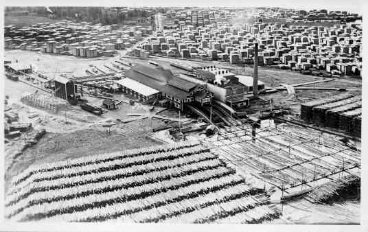 Vaikuttaisi että kuva on Kajaanista, Tihinsenniemestä. Kuvattu Kajaaninjoelta kaakkoon, etualalla Kajaani Oy:n saha, ylhäällä oikealla Makkolan asuinalue.