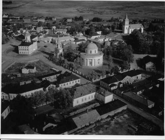 | ilmavalokuva: Hamina, vasemmalla raatihuone (1790), torni C |